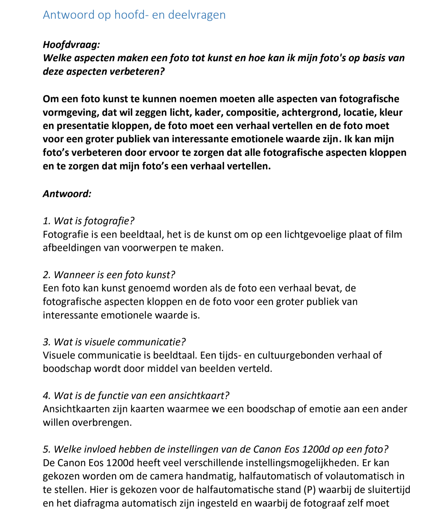 PROFIELWERKSTUK HAVO 5 OVER FOTOGRAFIE